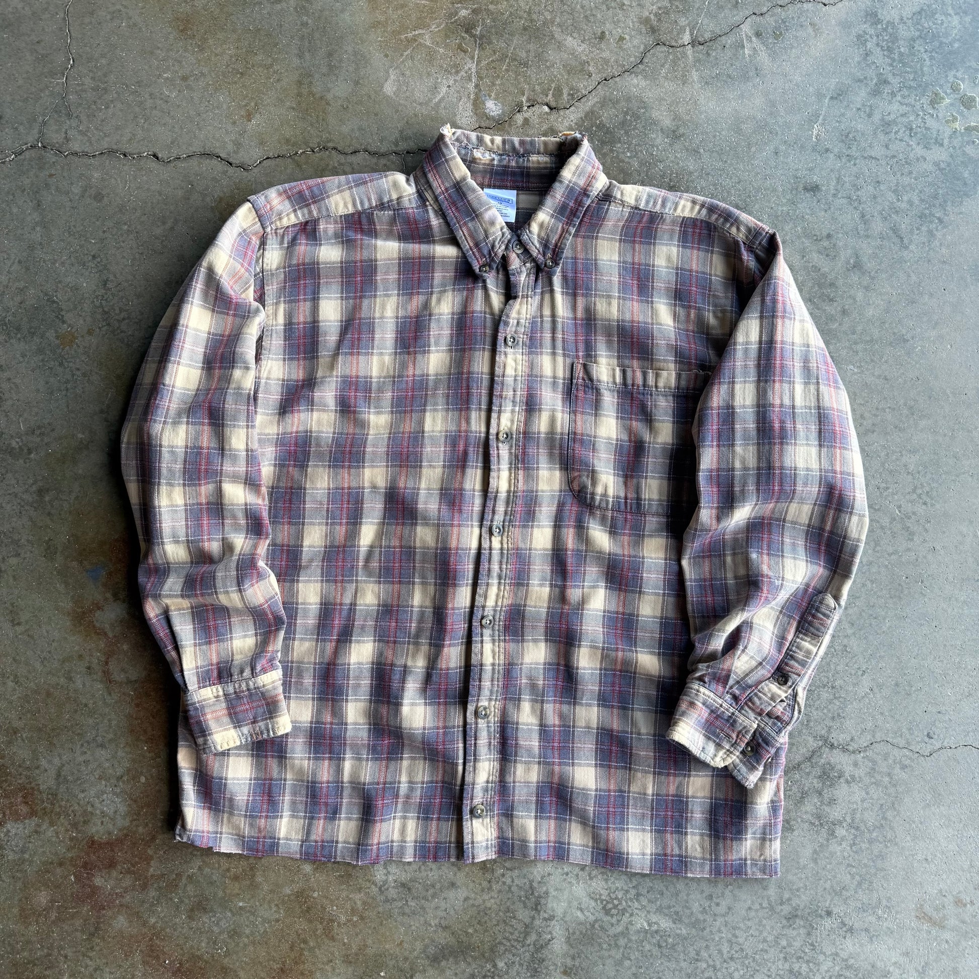 Vintage Distressed Cropped Flannel - L